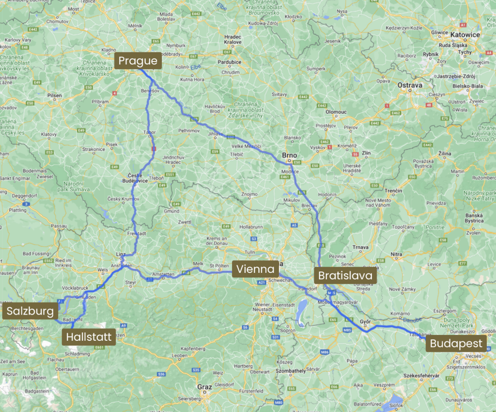 Vienna - Budapest - Bratislava - Prague - Hallstatt - Salzburg